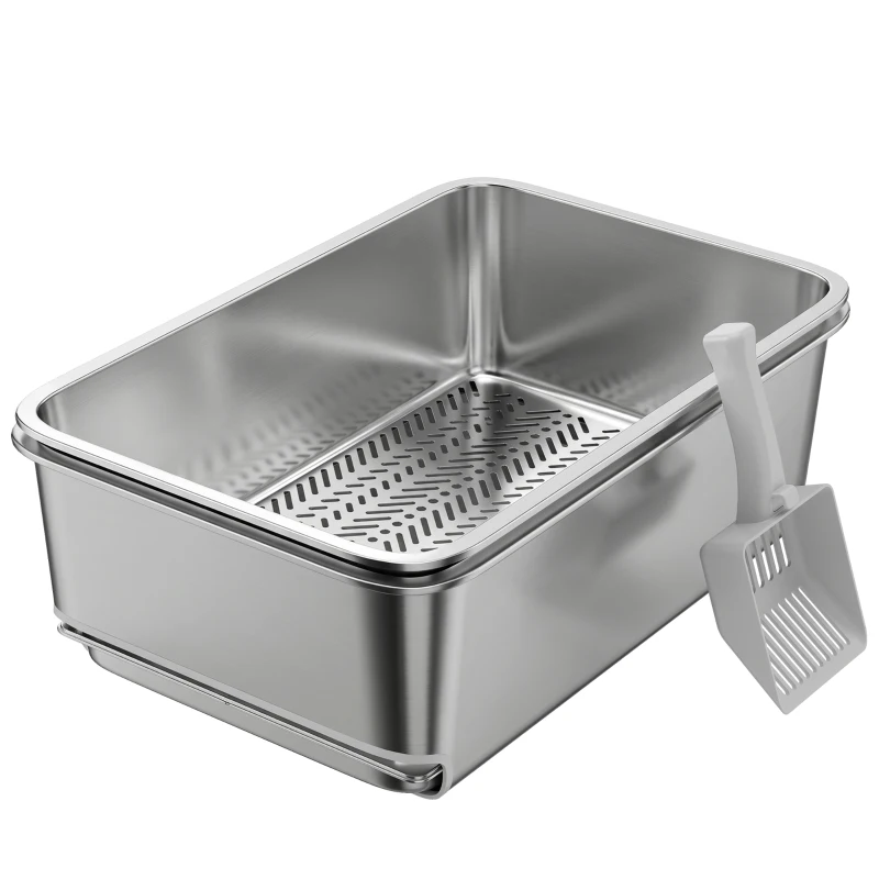 PawHut Stainless Steel Litter Box, XL Sifting Cat Litter Box for Medium, Large Cat, Non-Sticky, Odour Free, Easy Clean, Silver