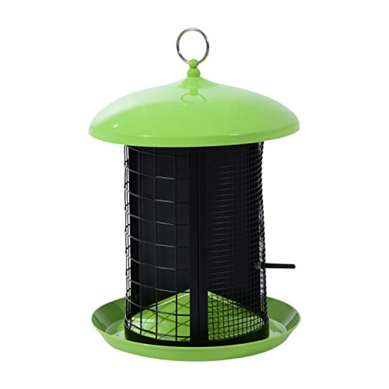 PawHut Triple Chamber Outdoor No Mess Bird Feeder Squirrel Proof - Lime Green / Black
