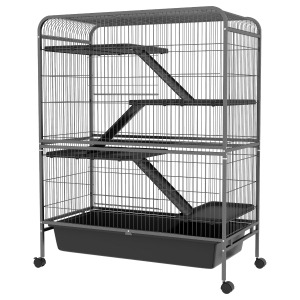 PawHut Two-Story Small Animal Cage Removable from Stand, Guinea Pig Cage with Shelf & Wheels, Pet Habitat for Hedgehog, Chinchilla, Ferret, 39" x 20.5" x 36.5", Black