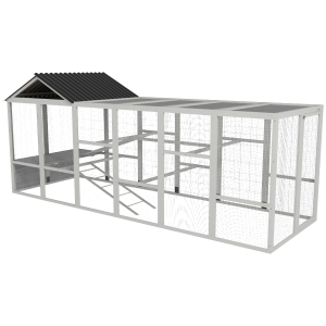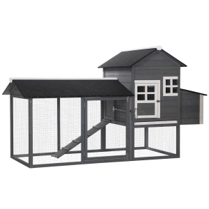 PawHut Wooden Chicken Coop Run for 6 - 10 Chickens, Hen House Add-On with Storage, Perches, 141.75" x 48" x 61", Gray