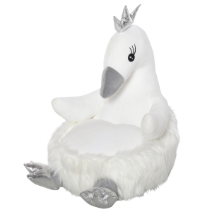 Qaba Stuffed Animal Sofa Armrest Chair Cartoon Storage Bean Bag Chair for Kids with Cute Swan Flannel PP Cotton 22" x 16.5" x 22" White