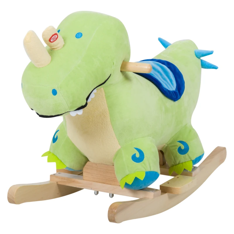 Qaba Kids Plush Ride-On Rocking Horse Toy Dinosaur Ride on Rocker Green with Realistic Sounds