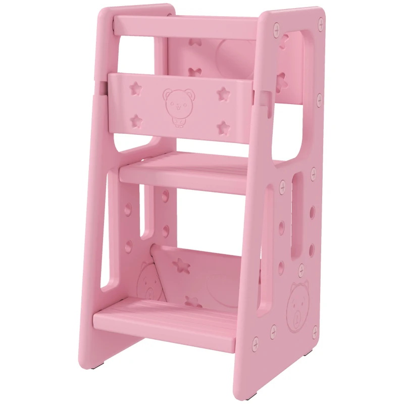 Qaba Toddler Tower with Adjustable Height, Anti-slip Mat, Toddler Step Stool, Pink