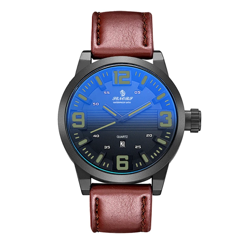 Senors Men Business Casual Watch Males Fashion Brown Leather Strap Wristwatch Quartz-Watch Relojes Casual Hombres 014--green dial plate