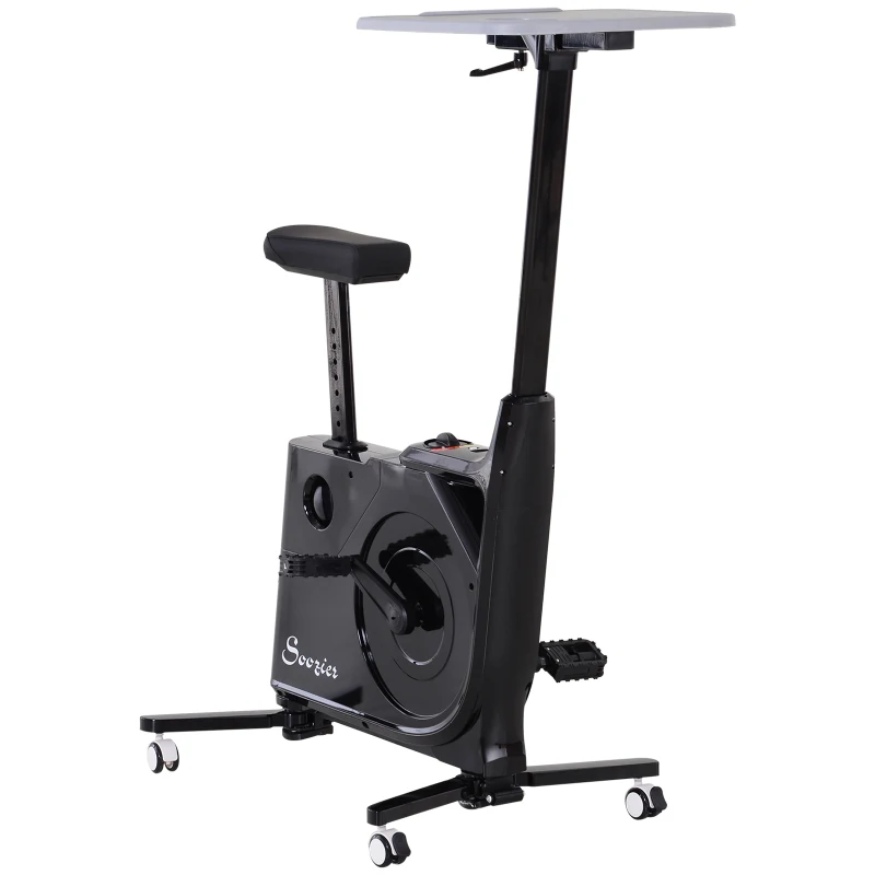 Soozier 2-in-1 Stationary Exercise Bike and Tabletop Workstation with LCD Monitor Black
