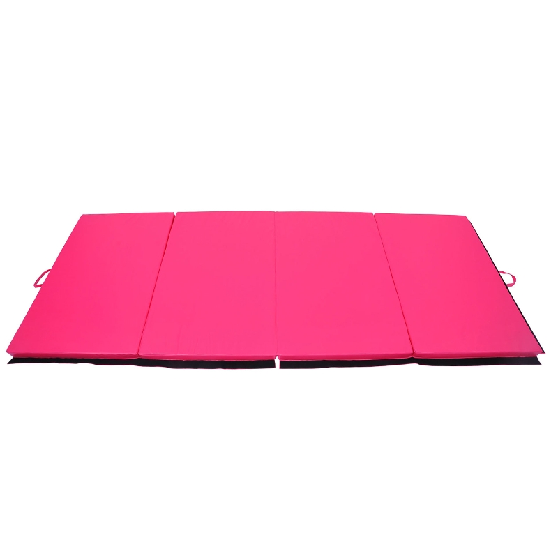 Soozier 10' x 4' x 2" PU Leather Folding Gymnastics Tumbling / Martial Arts Mat with Handles - Pink