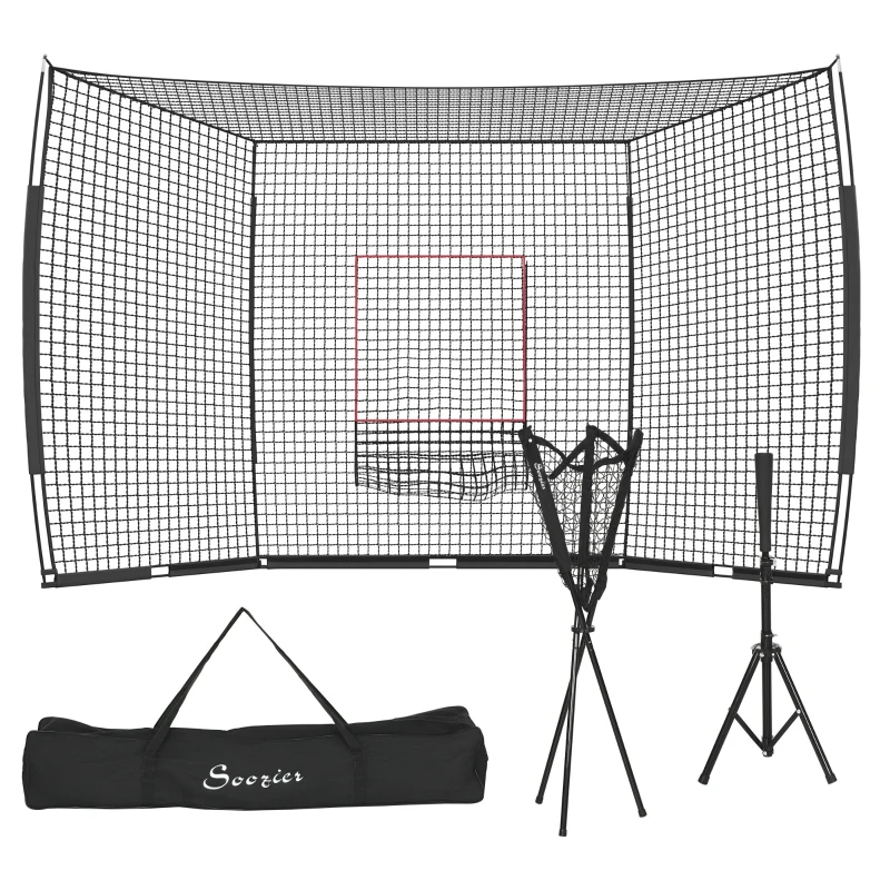 Soozier Softball and Baseball Net with Strike Zone, Tee, Caddy, and Portable Carry Bag for Pitching and Hitting Training
