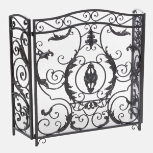 Traditional Fireplace Screen with Victorian Inspired Design, Wrought Iron with Ornate Detailing, 44.5" L x 9.75" W x 35" H, Black+Silver