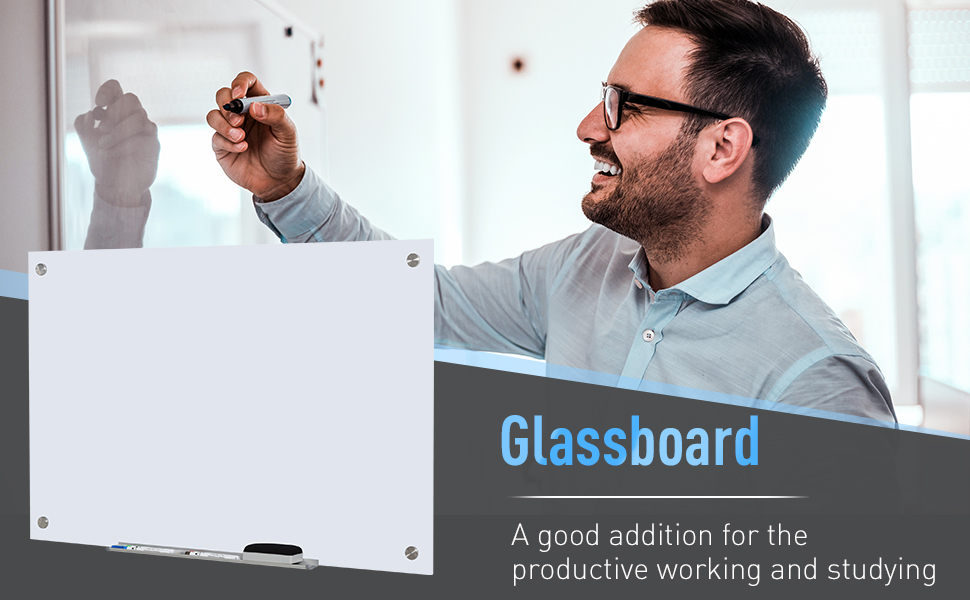Vinsetto 35.5" x 23.5" Glass Dry Erase Whiteboard, Frameless Board on Wall, with Dry Eraser, 4 Markers, Pen Holder and Frosted Surface
