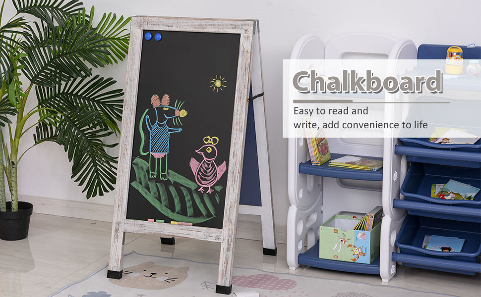 Vinsetto Magnetic A-Frame Sidewalk Chalkboard Sign 40” x 20” Sturdy Freestanding Wooden Sandwich Board with Eraser - Oak