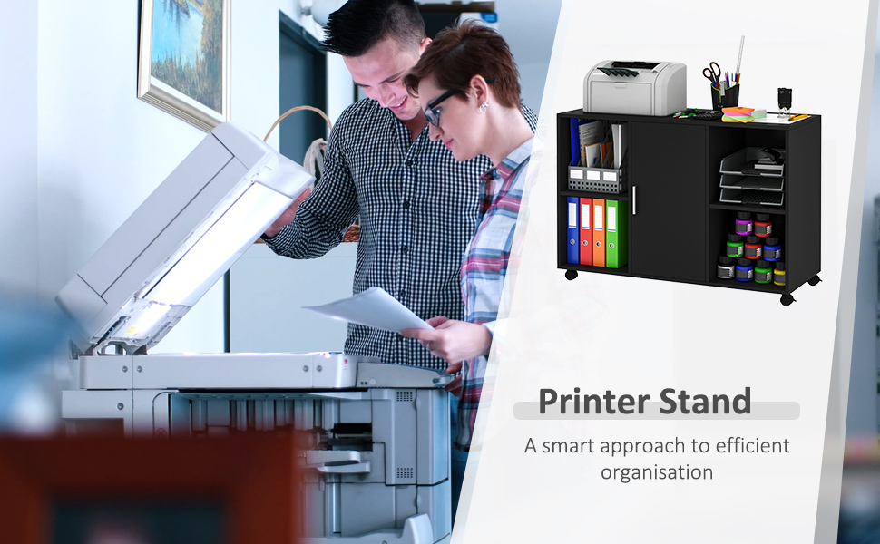 Vinsetto Mobile File Cabinet and Printer Stand for Home Office, Mobile Printer Table with 4 Open Storage Shelves, Door Cabinet, Wheels, Black